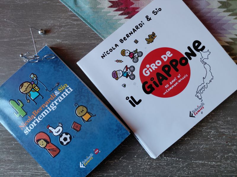 «Giro de il Giappone» e «Storiemigranti», autori Nicola Bernardi (Nik)https://www.feltrinellieditore.it/autori/bernardinicola/ & Sio (Simone Albrigi) https://it.wikipedia.org/wiki/Sio_(fumettista) editi da Feltrinelli – collana Feltrinelli Comics – rispettivamente nel 2025 (terza e definitiva versione con 90 tavole più 25 pagine) e nel 2019 (100 pagine).