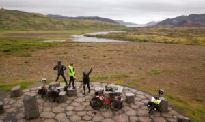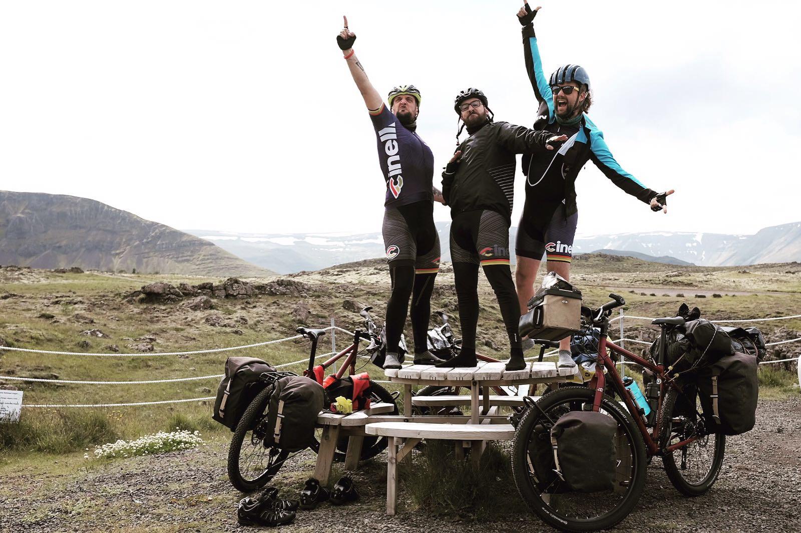 A proposito del parallelo con Jules Verne, sull’onda dell’entusiasmo del Giro del Giappone, Nik e Sio, questa volta insieme al loro amico e complice Lorenzo Civolari («Lorro»), dal 6 luglio al 1° settembre 2017 hanno fatto il giro dell’Islanda in bicicletta (poi sono andati in Groenlandia, il Signor Trump era al primo anno del suo primo mandato presidenziale, auff…!). Proprio dall’Islanda Jules Verne fa iniziare l’avventura del suo celebre «Viaggio al centro della Terra», pubblicato nel 1864: un percorso che scende dal cratere del vulcano islandese Snæfellsjökull e risale in superficie attraverso il cratere dello Stromboli. In effetti un tracciato un po’ arduo da fare in bici…